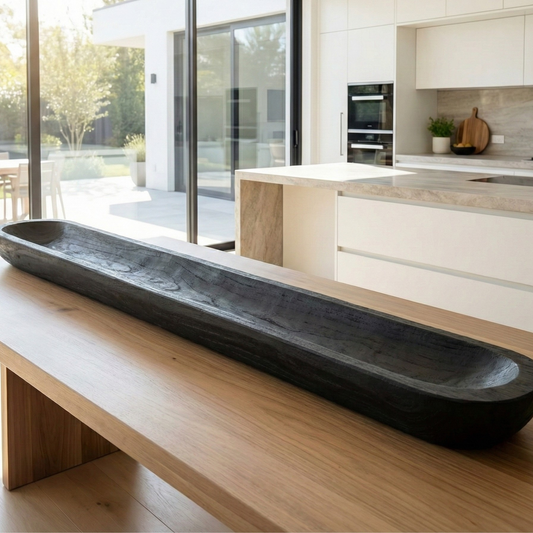 30" Handmade Long Wood Dough Decorative Bowl