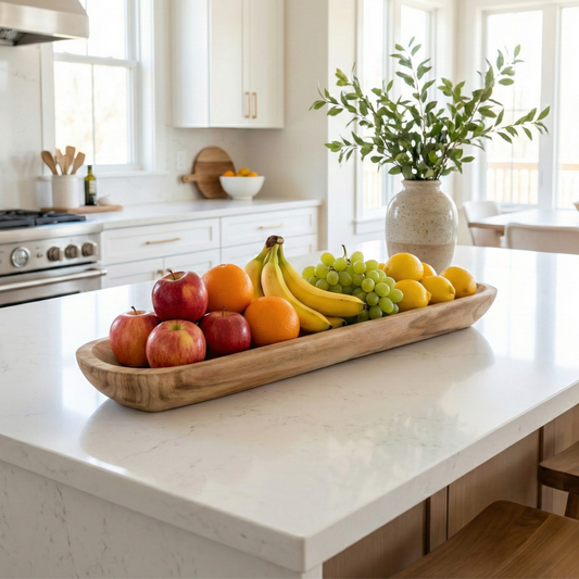 • 30" Handmade Long Wood Dough Decorative Bowl