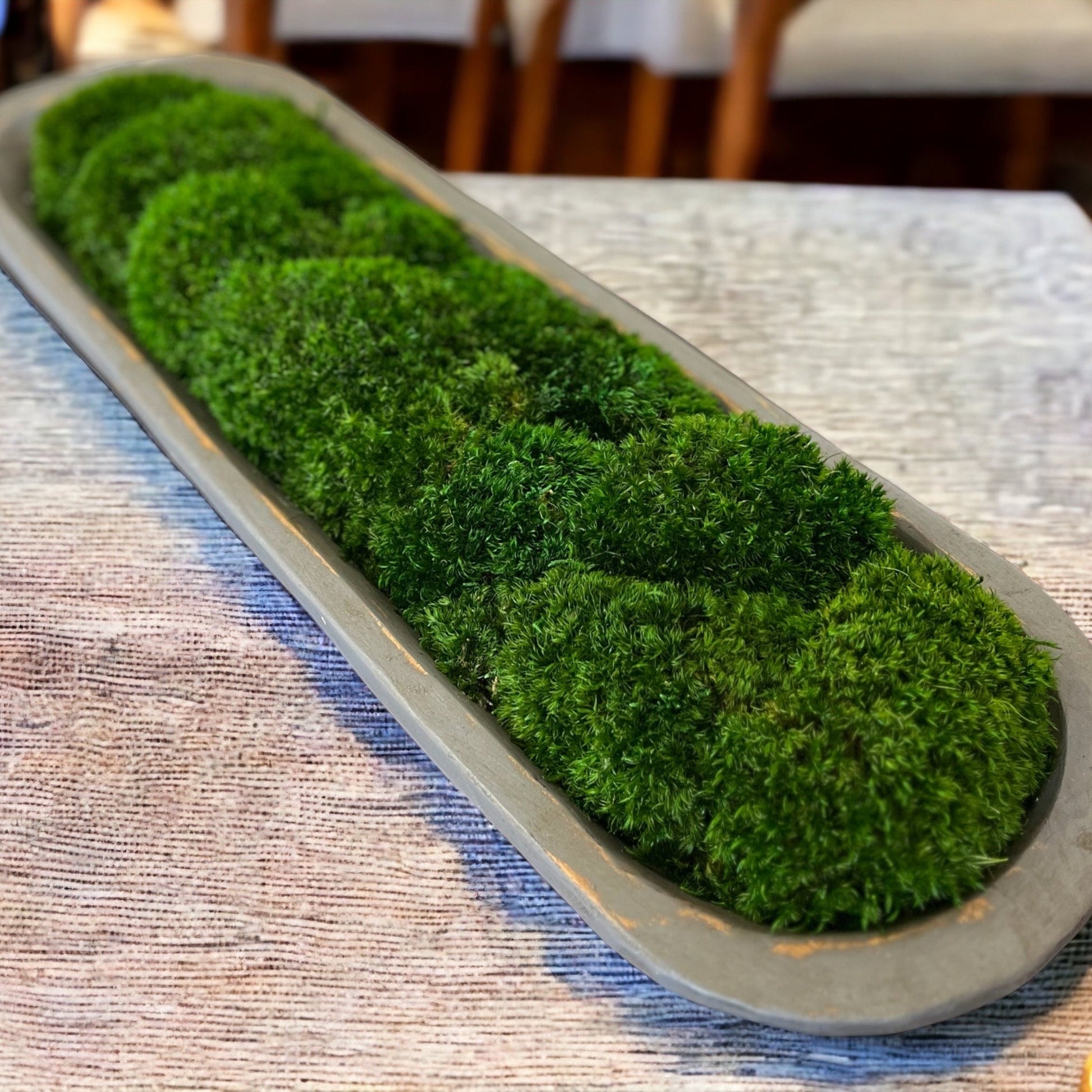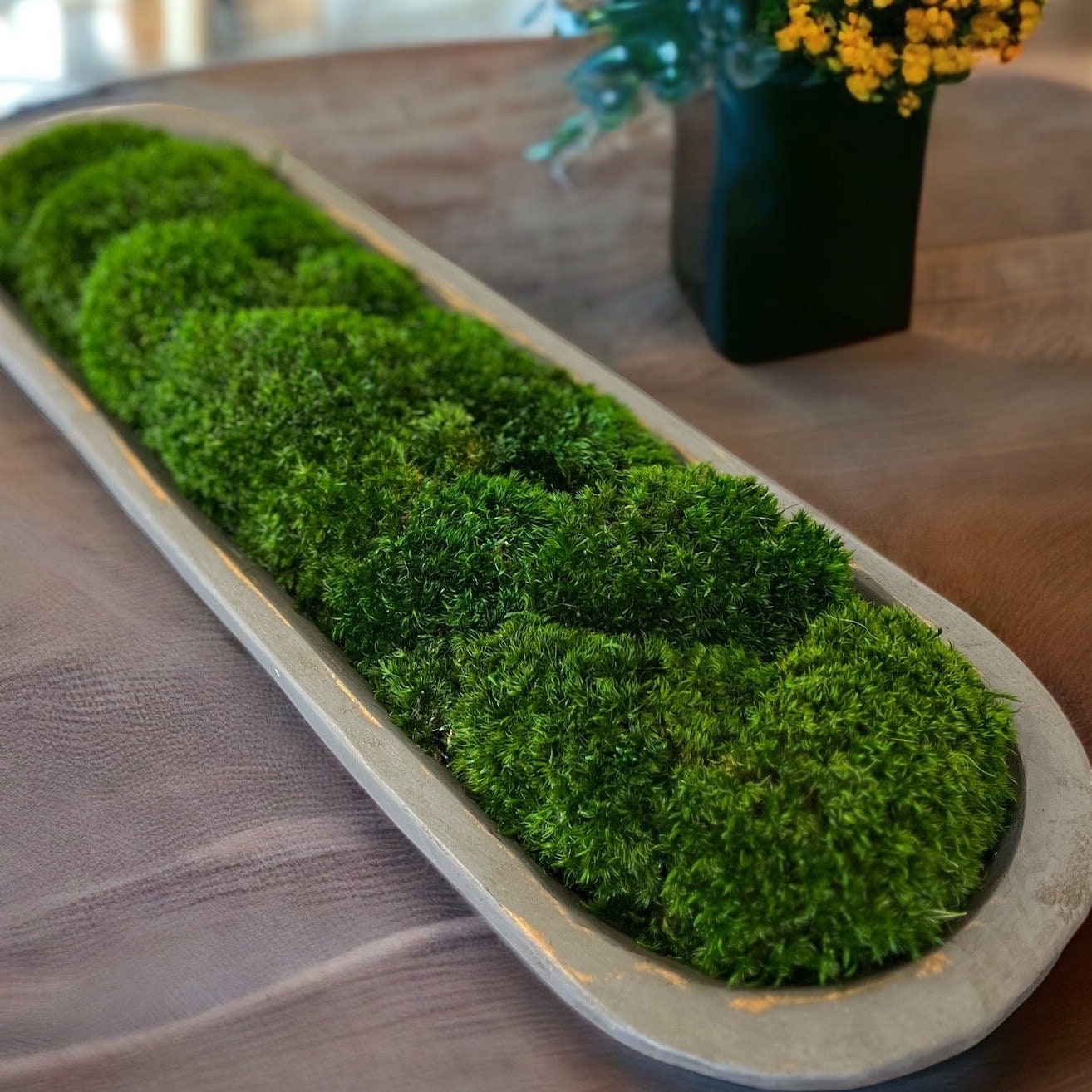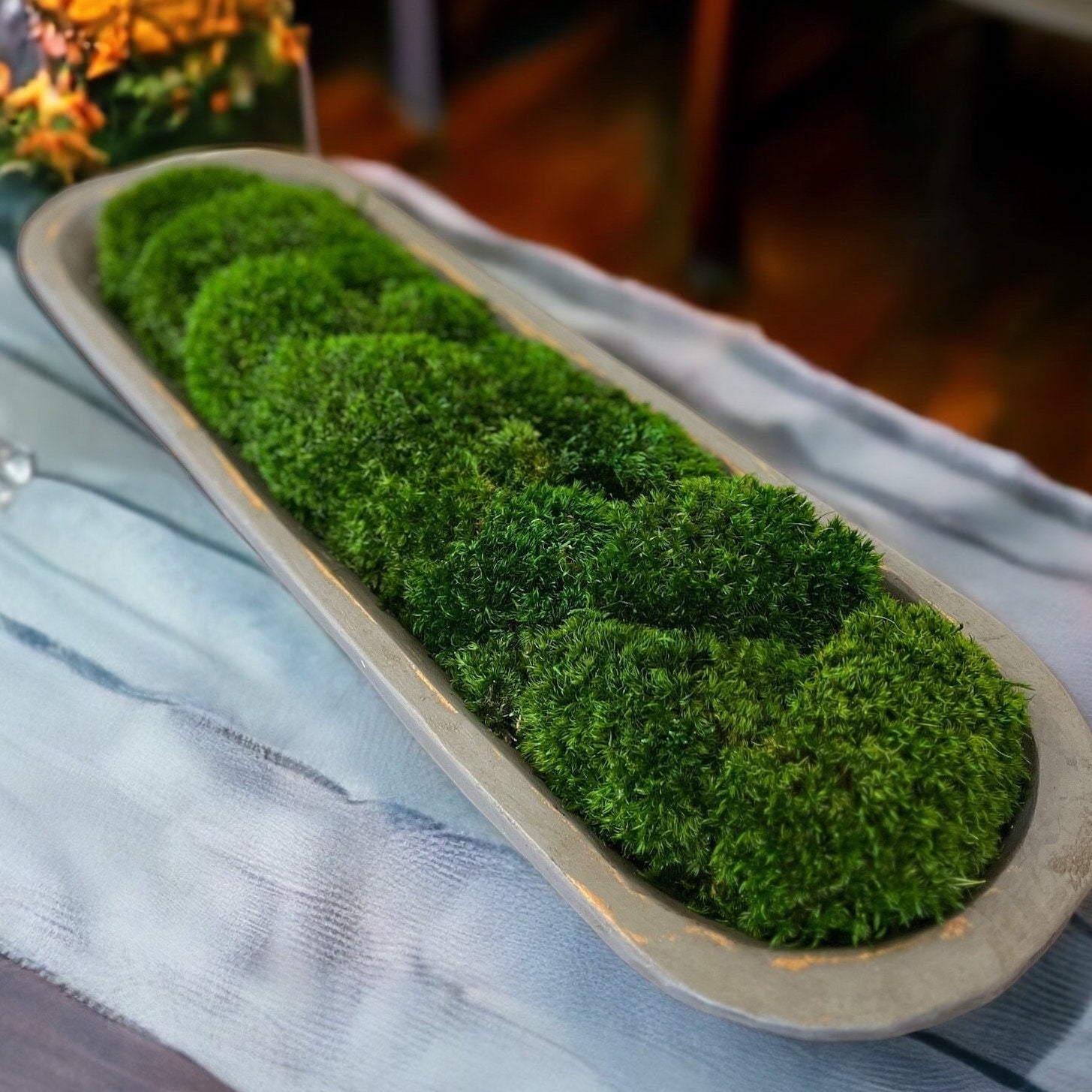 🌿 Natürliche Schönheit erhalten: Dieses aus konserviertem Moos gefertigte Tafelaufsatz fängt das üppige Grün und die organischen Texturen der Natur ein und bringt einen Hauch von Natur in Ihre Inneneinrichtung.