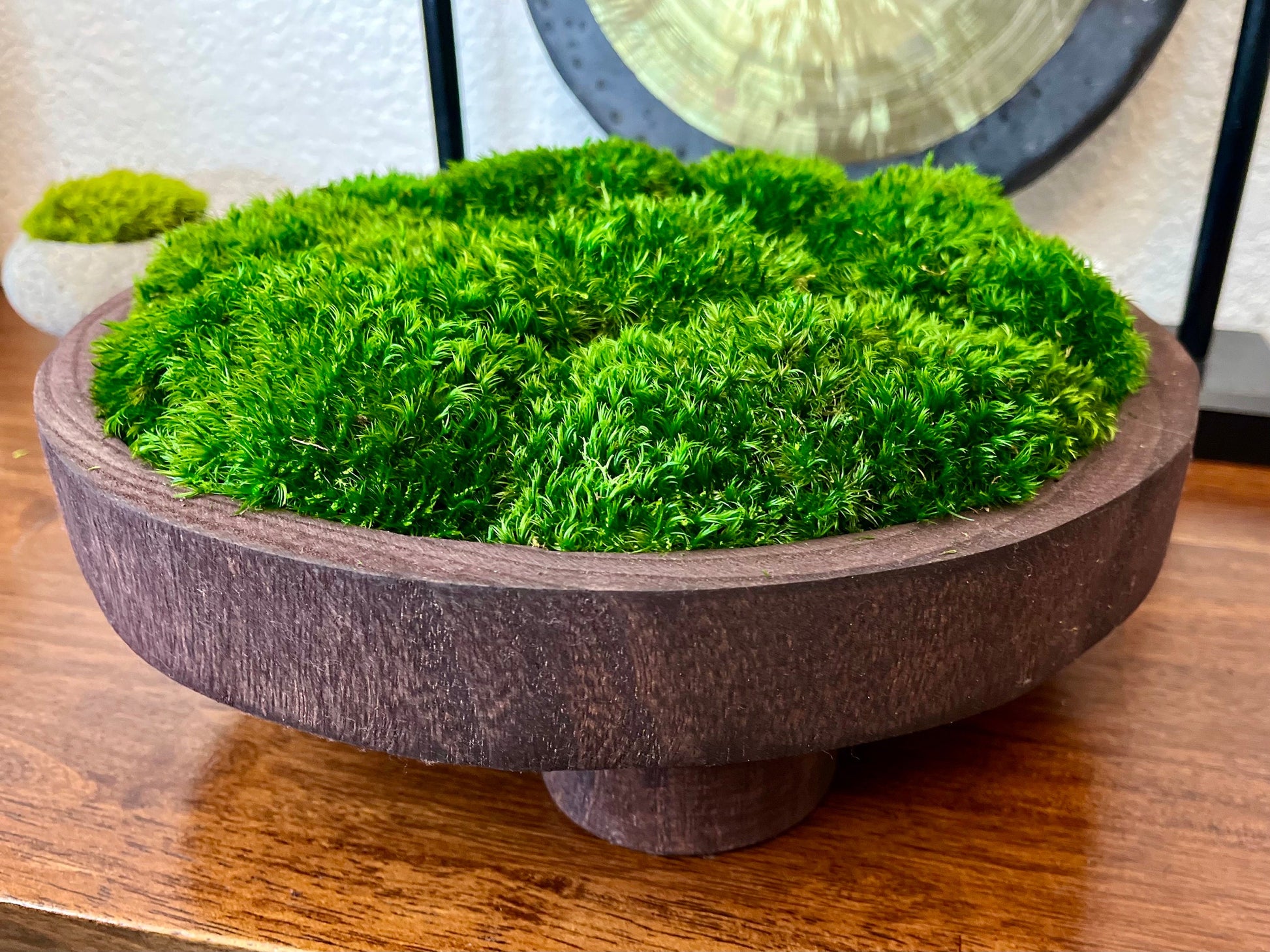 Materialien: Konserviertes Moos, runde Schale auf Sockel aus natürlichem Paulownia-Holz