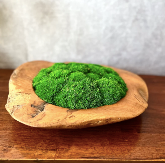 18" Preserved Moss Bowl Paulownia Wood