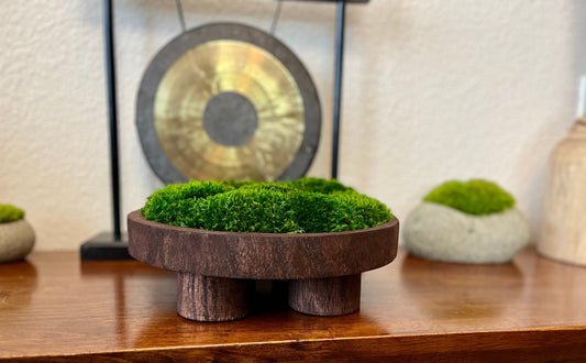 12" Round Mahogany Pedestal Moss Bowl