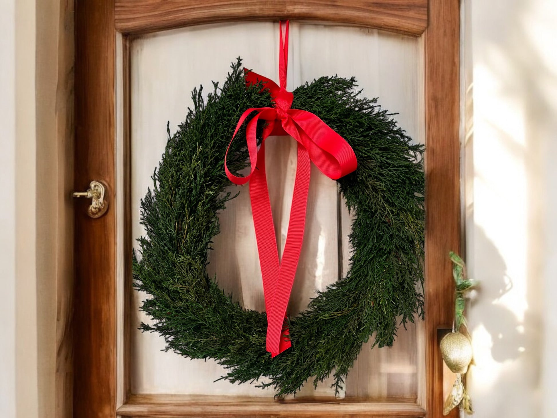 Beautiful and Long-Lasting Preserved Cedar Wreath with Red Bow
