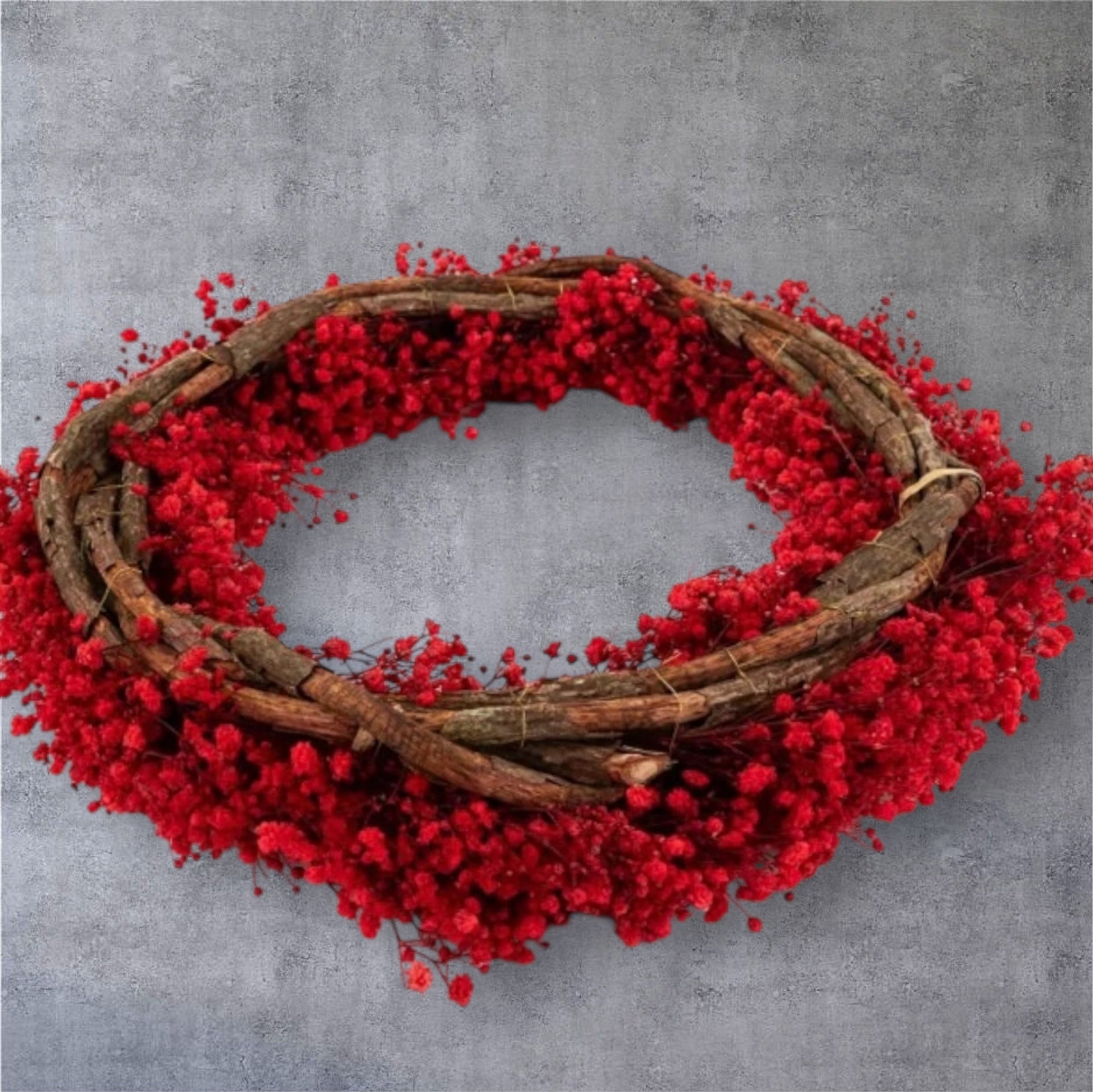 14-inch Preserved Baby's Breath Wreath Red - Christmas Wreath