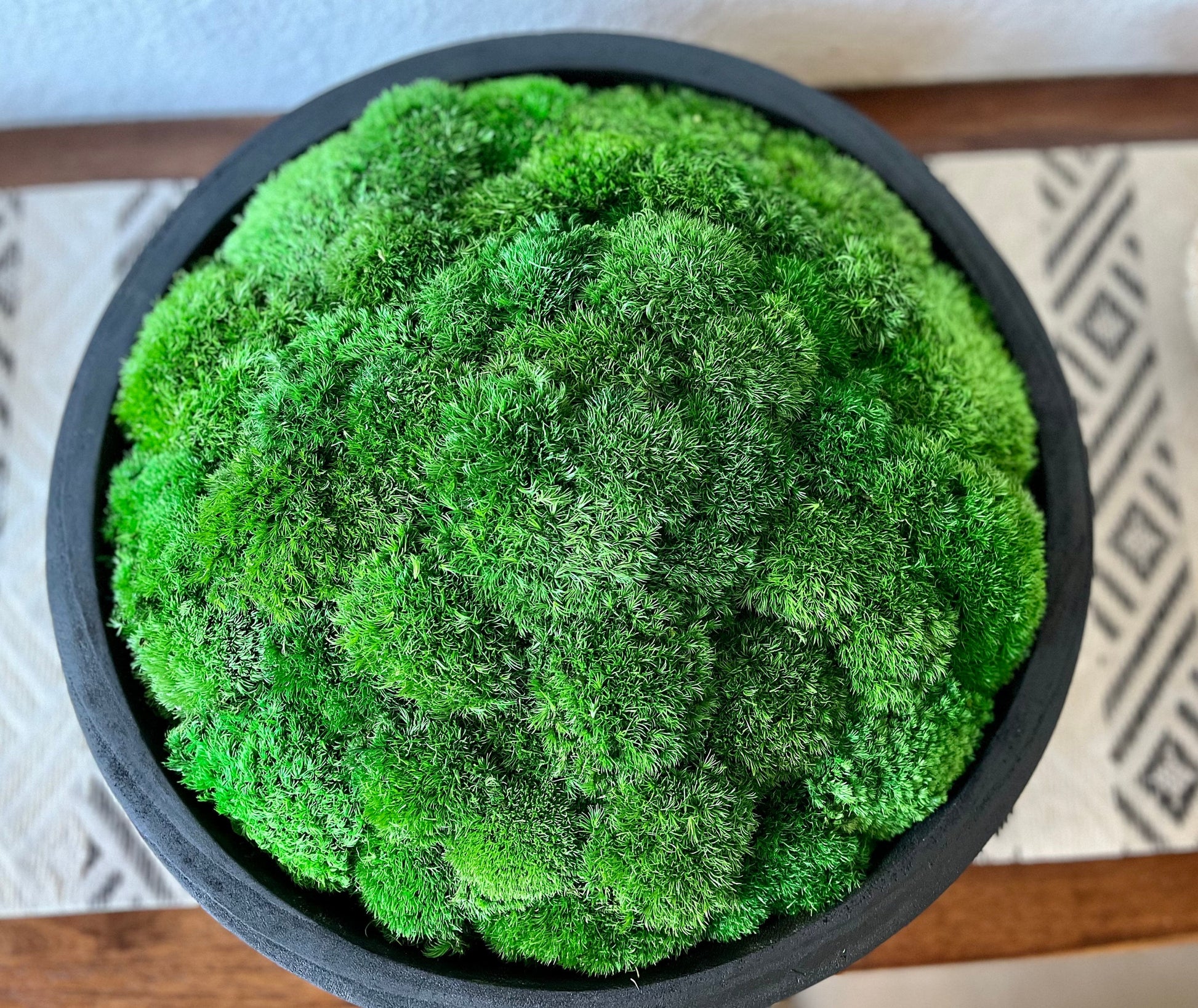 Preserved moss bowl is a beautiful and unique piece of decor that adds a touch of nature to any room. The 15-inch diameter black wood base provides a sturdy foundation for the lush and vibrant green moss that is preserved to maintain its natural beauty.
