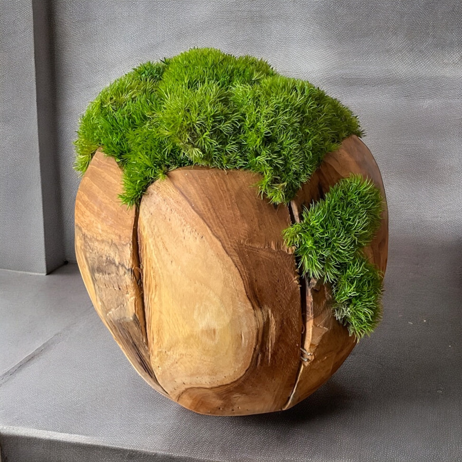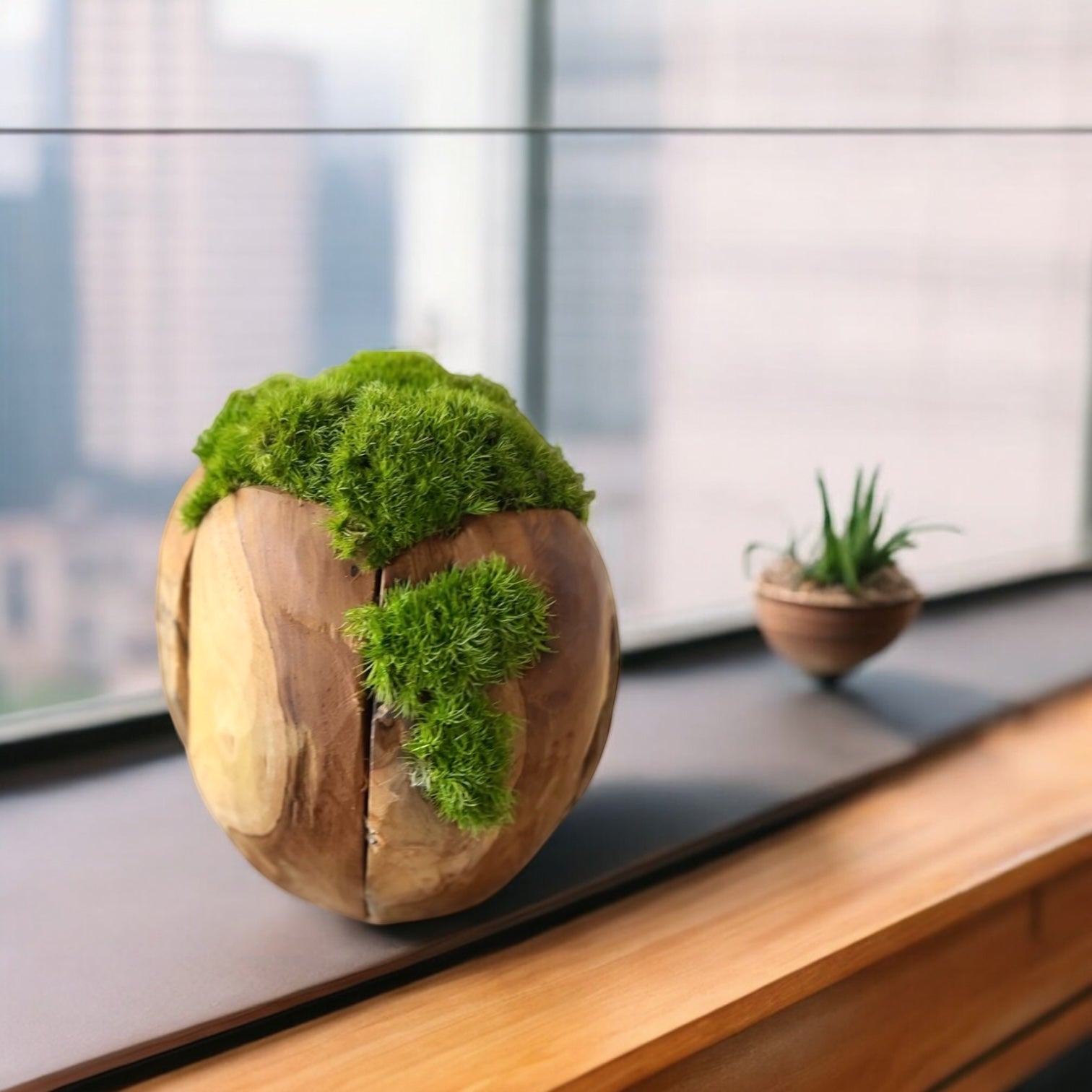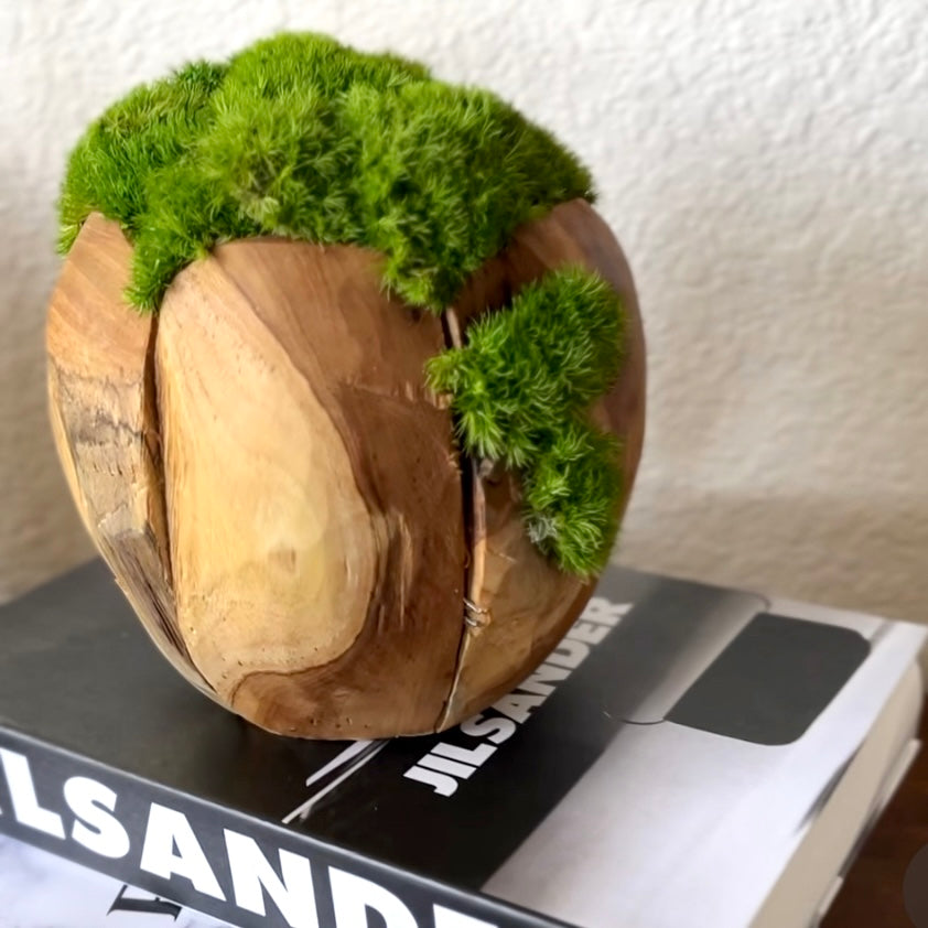 Crafted from premium teak wood, this 6-inch mossed teak sphere showcases natural textures enhanced by a delicate moss finish. Its expert craftsmanship highlights the wood’s durability and organic beauty, making it an elegant accent for sophisticated interiors or outdoor spaces. Ideal for adding a touch of nature-inspired refinement to your décor.
