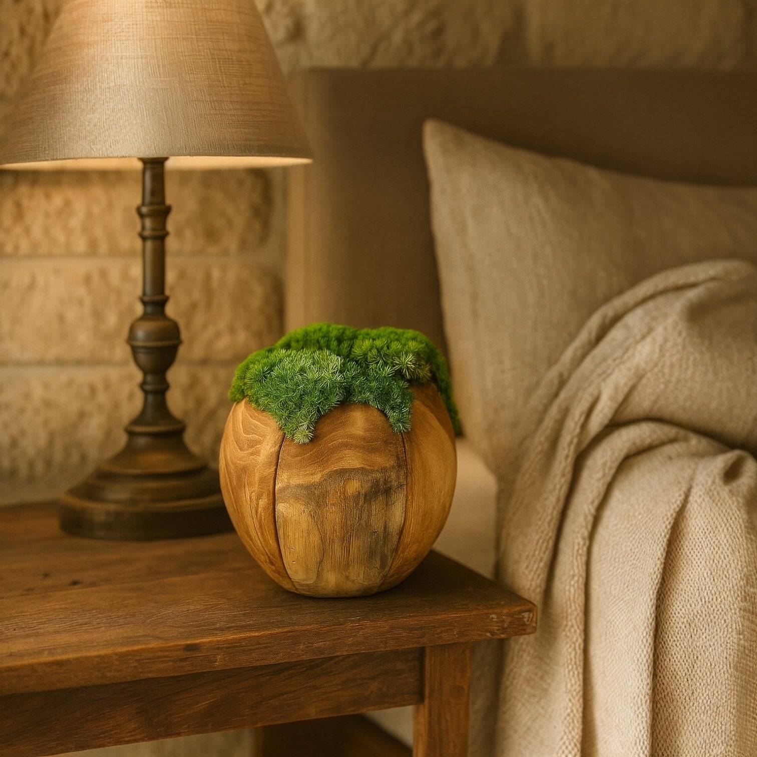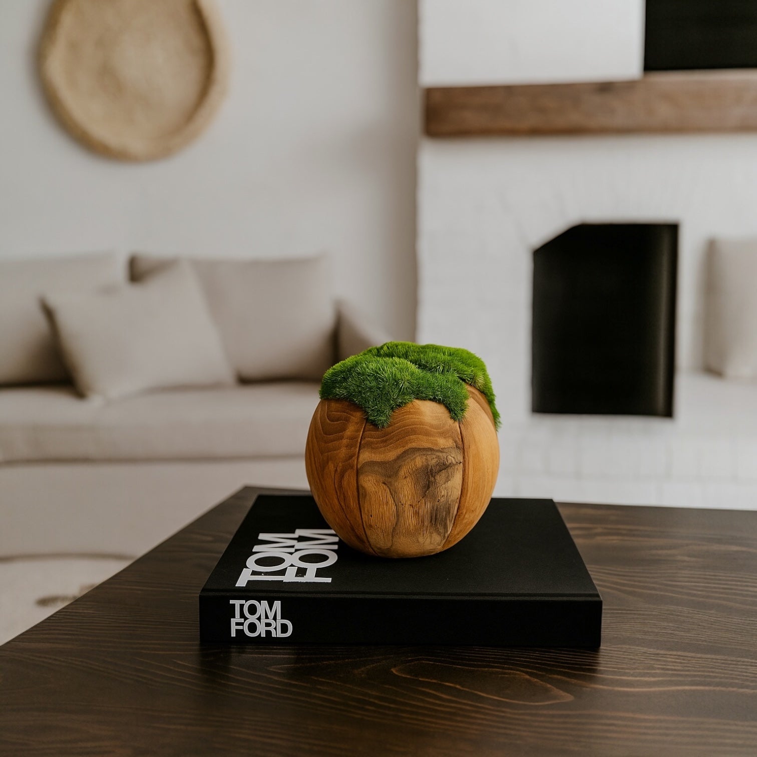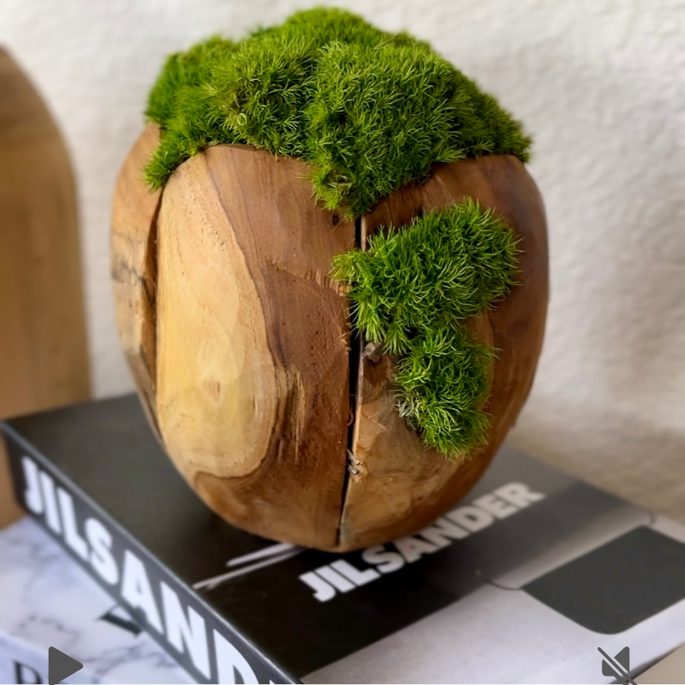 Crafted from premium teak wood, this 6-inch mossed teak sphere showcases natural textures enhanced by a delicate moss finish. Its expert craftsmanship highlights the wood’s durability and organic beauty, making it an elegant accent for sophisticated interiors or outdoor spaces. Ideal for adding a touch of nature-inspired refinement to your décor.