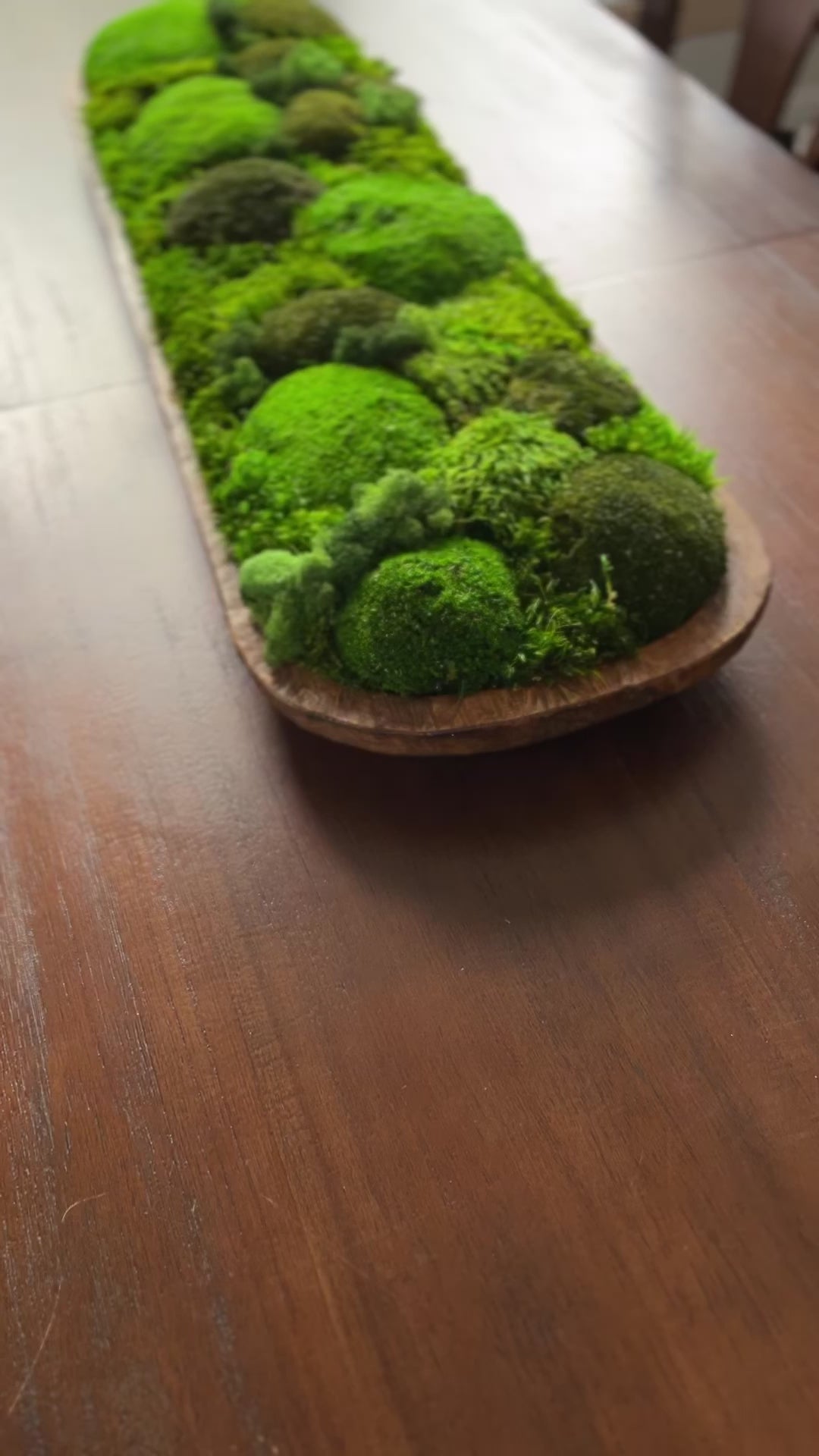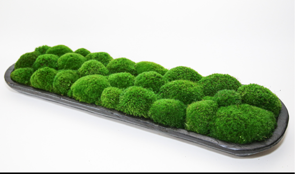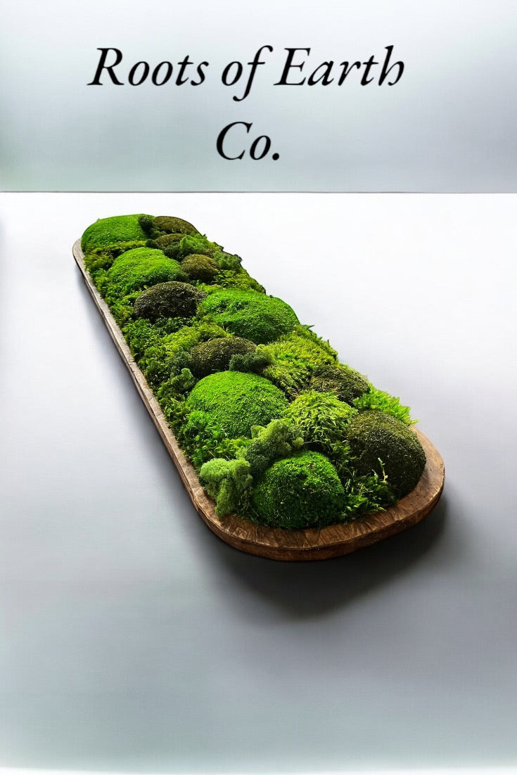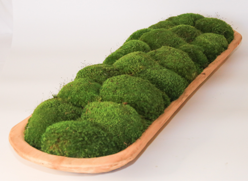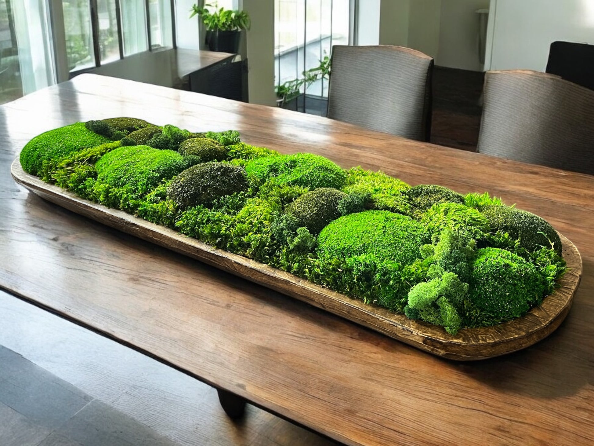FAITES ENTRÉ L'EXTÉRIEUR : CENTRE DE TABLE EXTRA LARGE EN MOUSSE PRÉSERVÉE DANS UN BOL À PÂTE RUSTIQUE