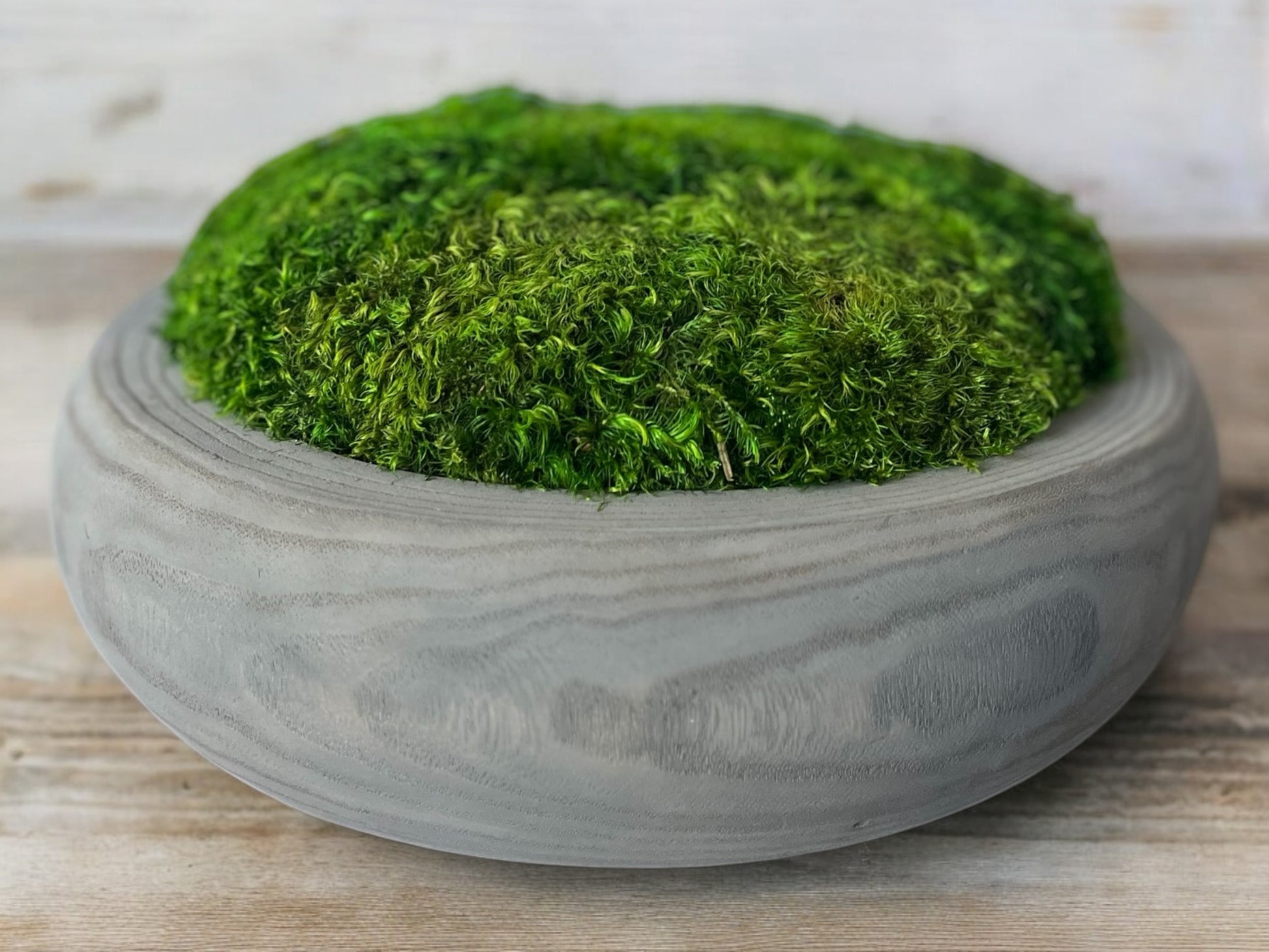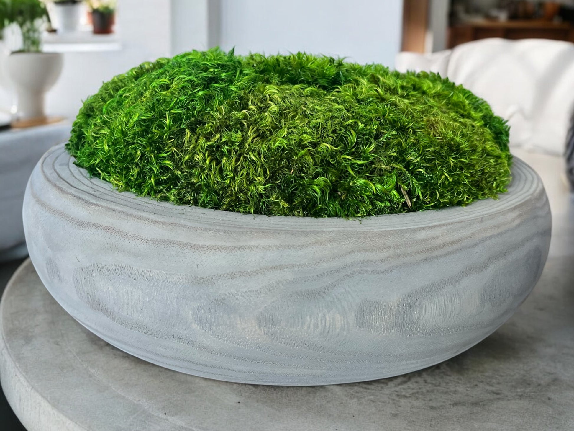 Expertly crafted from preserved moss and rustic wood, this 12” round centerpiece bowl adds a touch of natural elegance to any space. Its unique design provides a versatile and durable option for displaying your favorite items. Upgrade your decor with this charming piece.
