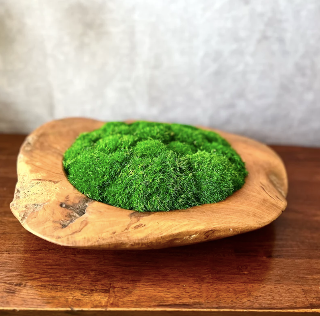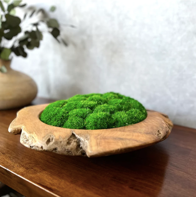 Discover our handcrafted 16" teak wood bowl filled with preserved moss, a unique centerpiece that brings a touch of nature to any coffee table decor. Ideal for modern farmhouse style, this moss bowl makes a thoughtful housewarming gift, enhancing any home with its rustic charm.