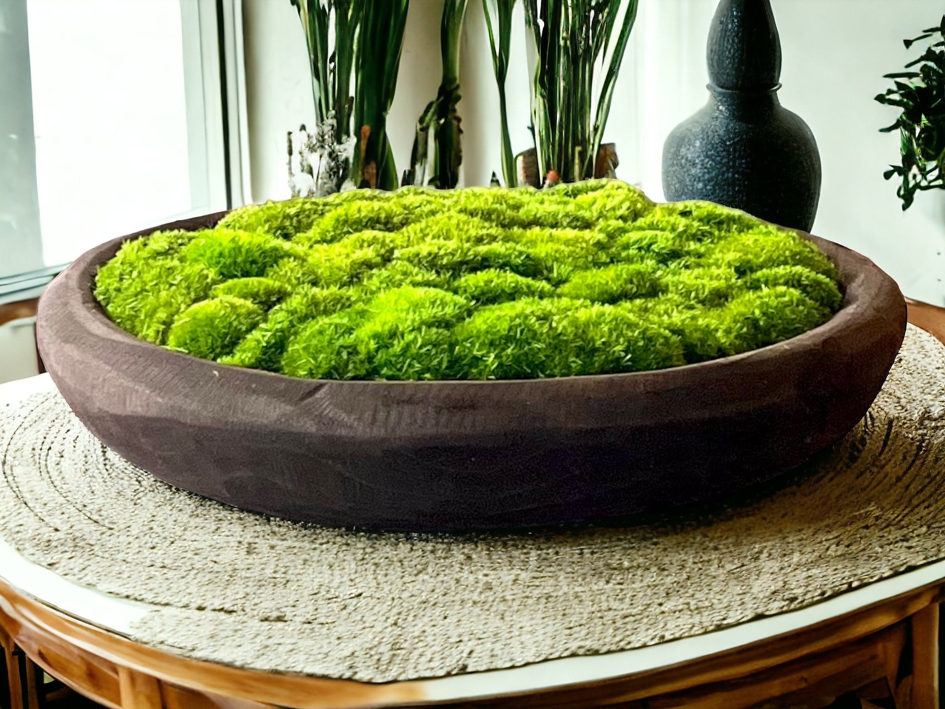 This custom 20โ round moss bowl adds a touch of nature-inspired beauty to your tabletop rustic decor. Made with preserved moss in a wooden bowl, itโs the perfect modern centerpiece and a thoughtful gift for a new home.