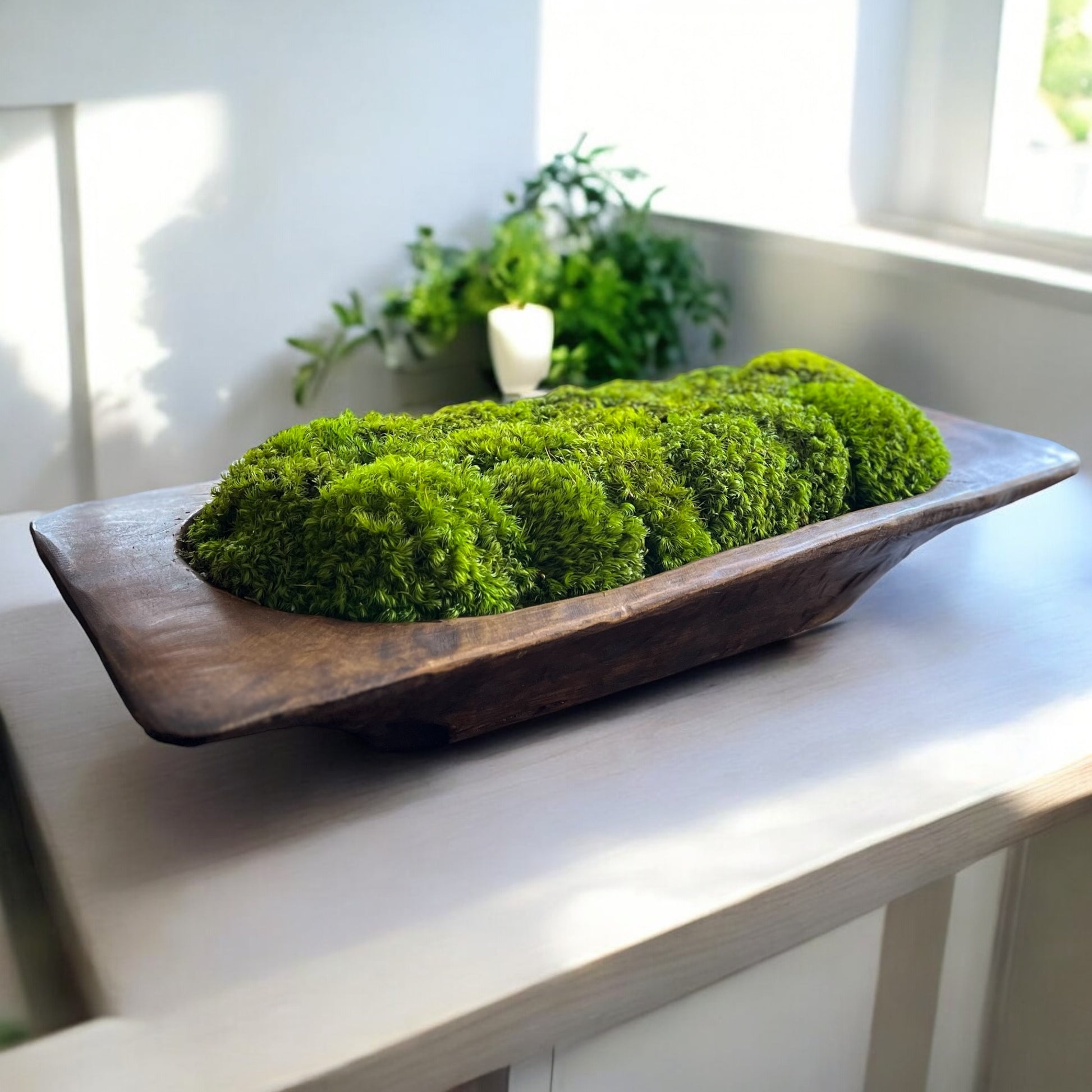 Create a striking moss centerpiece for your dining table with this 26 Inch mid-century modern design, featuring preserved moss in a large, grand wooden bowl. Perfect for farmhouse or cottage decor, this centerpiece adds a natural, timeless touch to your space.