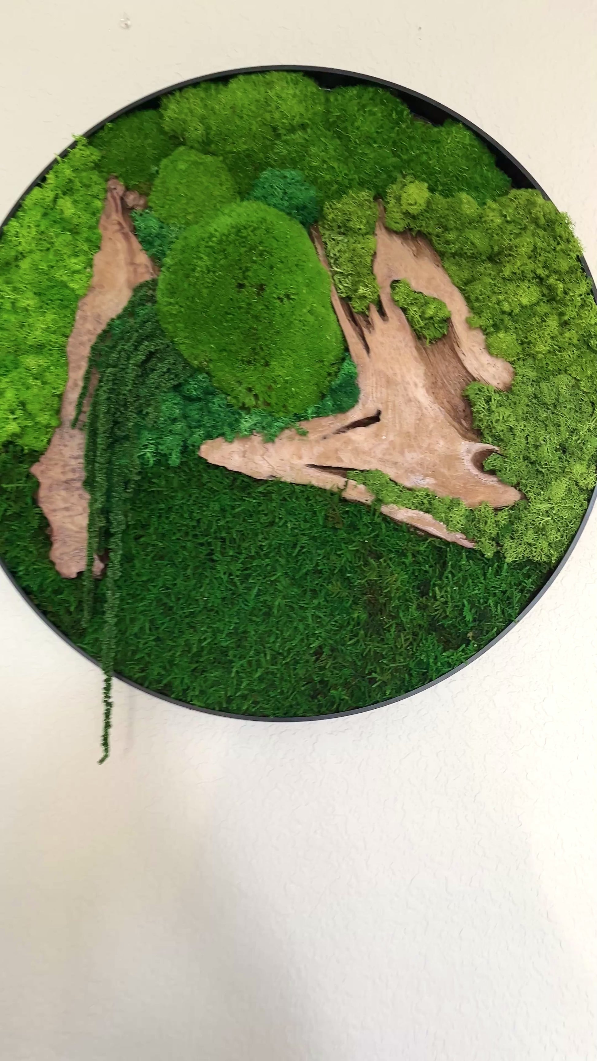 Moss wall art Introducing our Preserved Moss Wall, the perfect way to add a touch of nature to your home or office. This unique wall art display features a natural frame accent, creating a stunning addition to any living room or office decor. Made with eco-friendly alloy aluminum frame and preserved moss, this modern wall hanging brings a touch of botanical elegance to any space. Keep away from direct sunlight and excessive moisture for long-lasting beauty.
